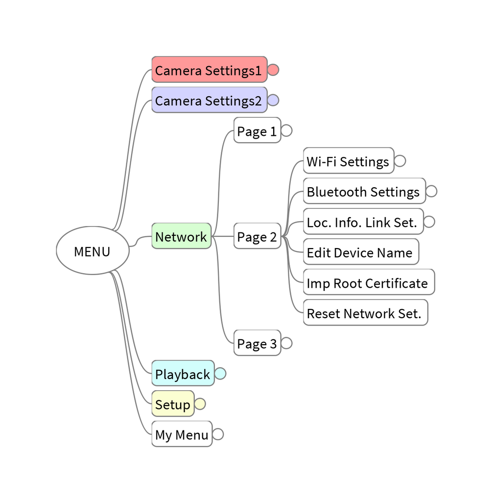 A mind map of the Sony α7 Mark III menu system. Use the Freeplane mind-mapping tool to work and edit the mind map. It's also possible to import the mind map file into many popular mind-mapping applications.